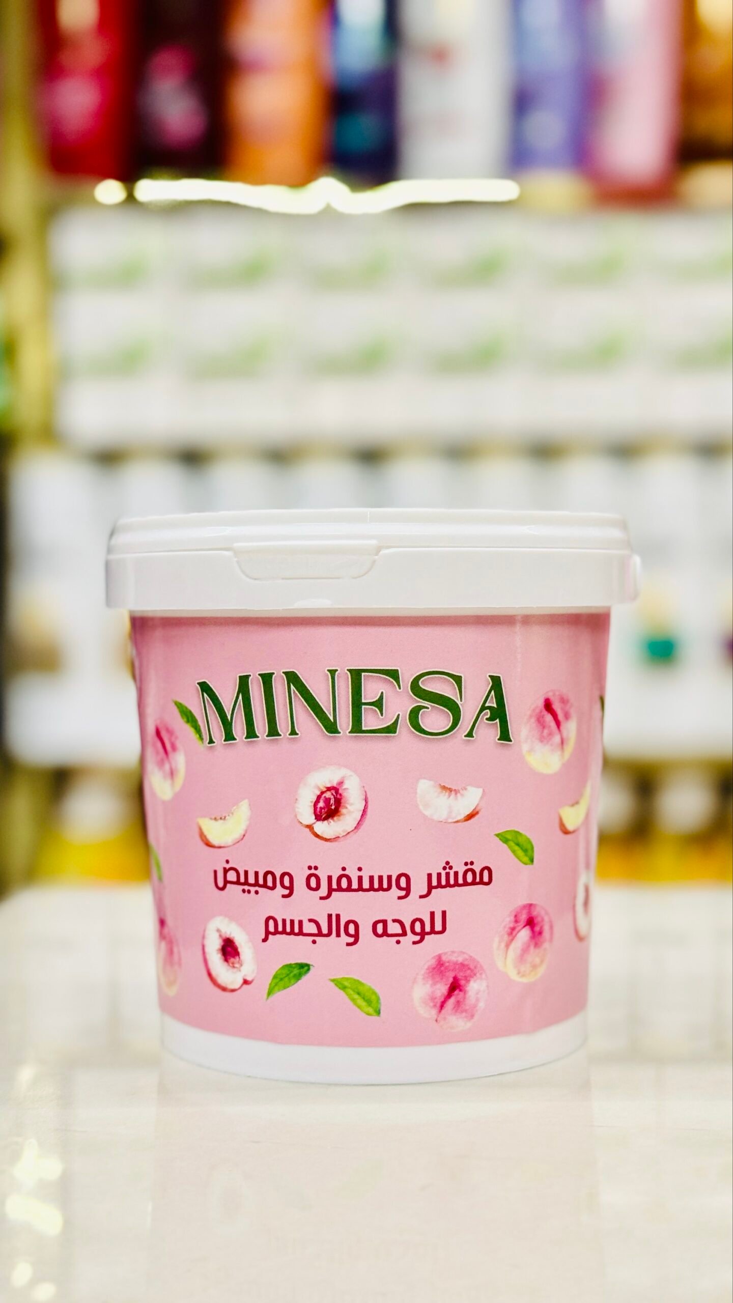 بخلاصة الخوخ، يعمل على تبييض وتجديد بشرة الوجه والجسم لإكسابها ملمساً ناعماً ومظهراً مشرقاً.
